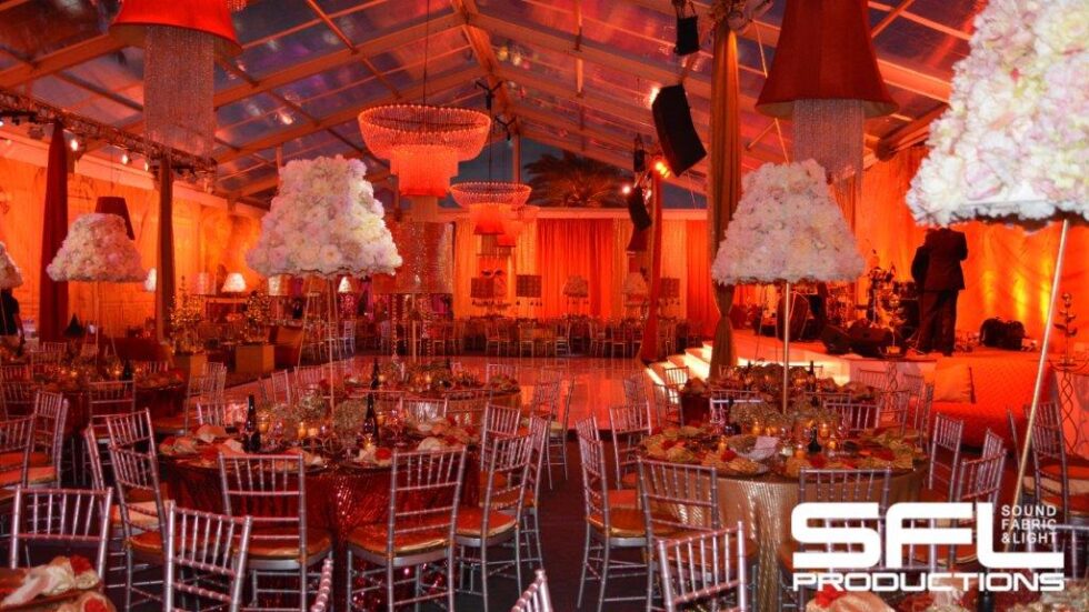 With over fifty years of combined experience in the special events industry, SFL Productions offers an extensive range of lighting options. A caterer, for example working at a private residence may want to highlight their food presentations by utilizing our hanging lanterns. Wedding planners can utilize our expertise when requiring LED mood lighting for a tented wedding. A company’s decor elements for a Mitzvah provide opportunities for our interactive, cutting edge lighting packages. Focal lighting on your floral arrangement gives that necessary enhancement for table settings at your next ballroom event. Creating strong and supportive relationships with our clientele has earned us a shining reputation.